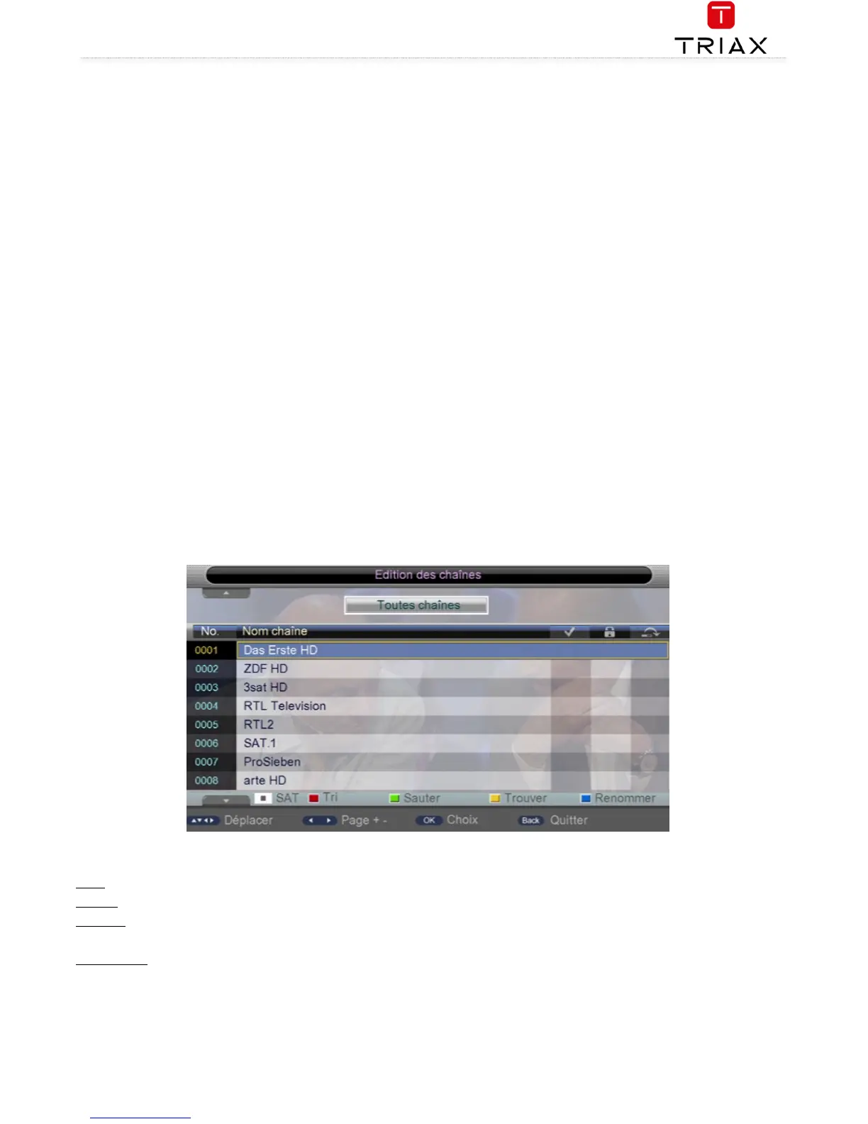 En activant la fonction édition des chaînes, le menu suivant apparaît :