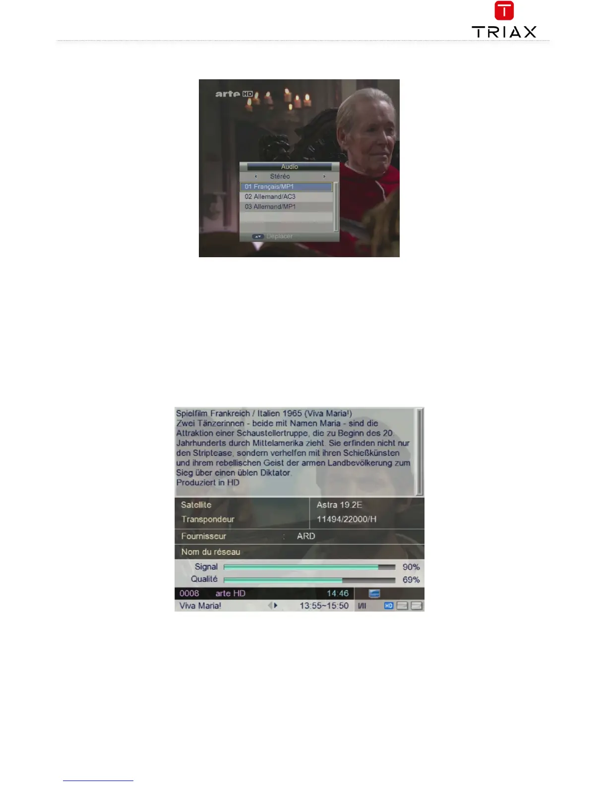 comme affiché ci-dessous. En pressant une deuxième fois sur la touche info plus de détails sont