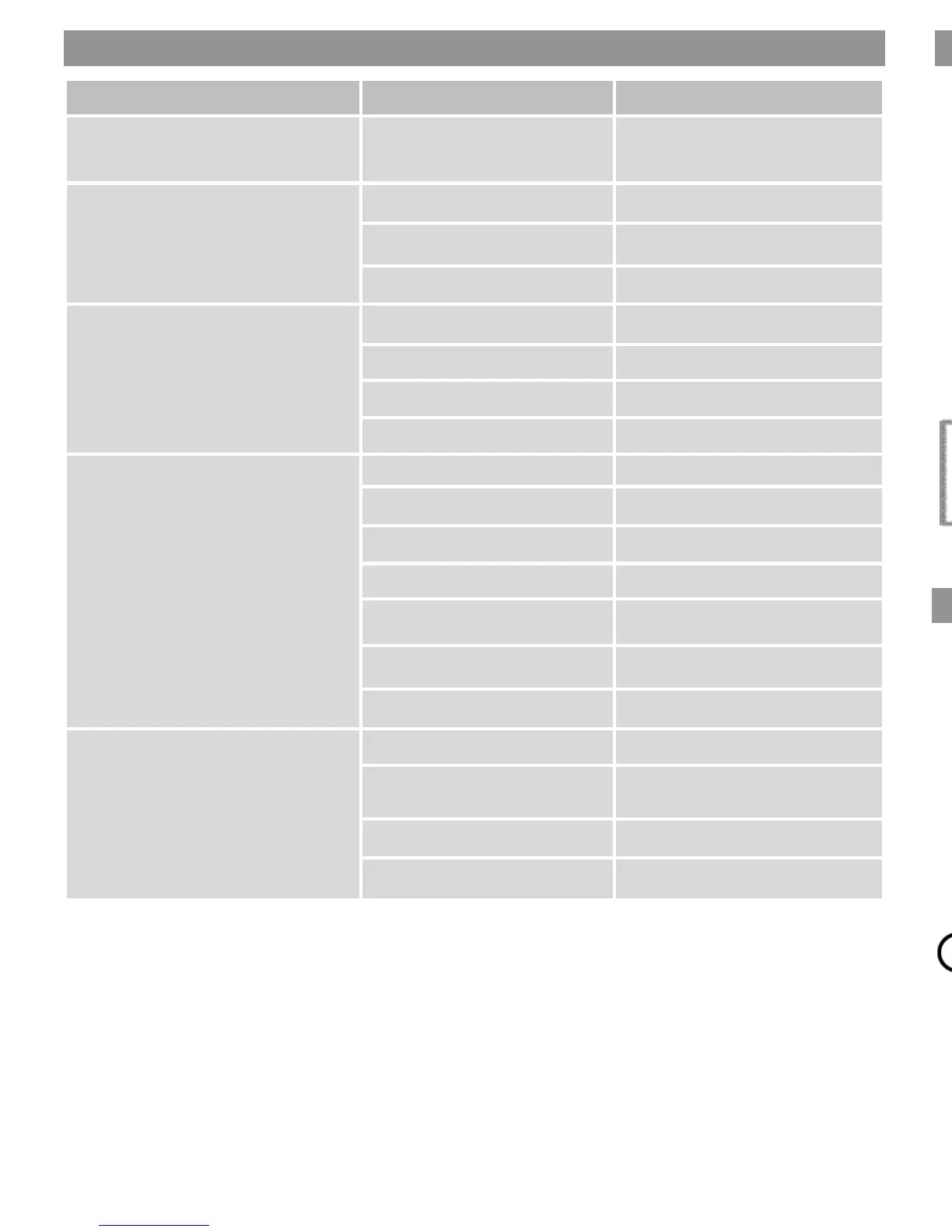 Main menu Submenu Explanation