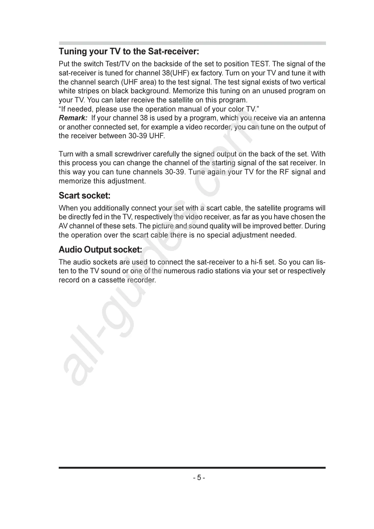 Tuning your TV to the Sat-receiver: