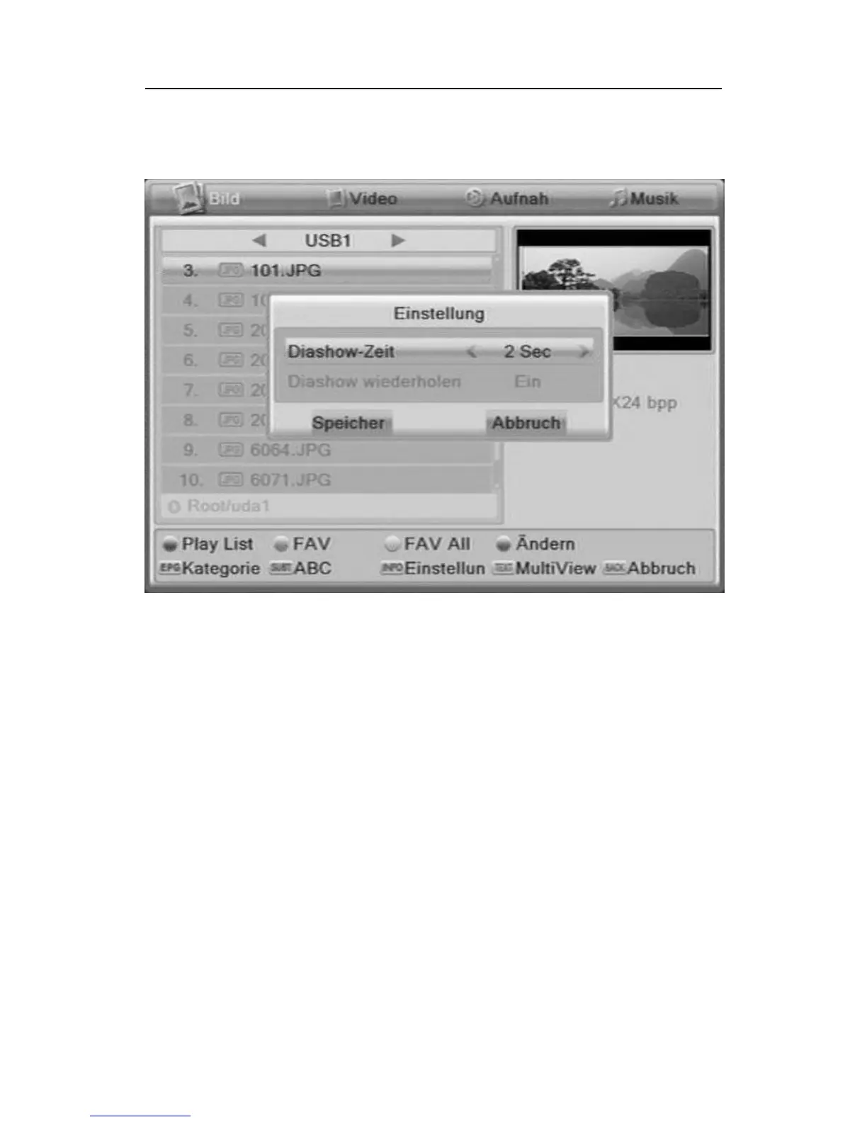 file in the slideshow list. With the blue function key remove all images