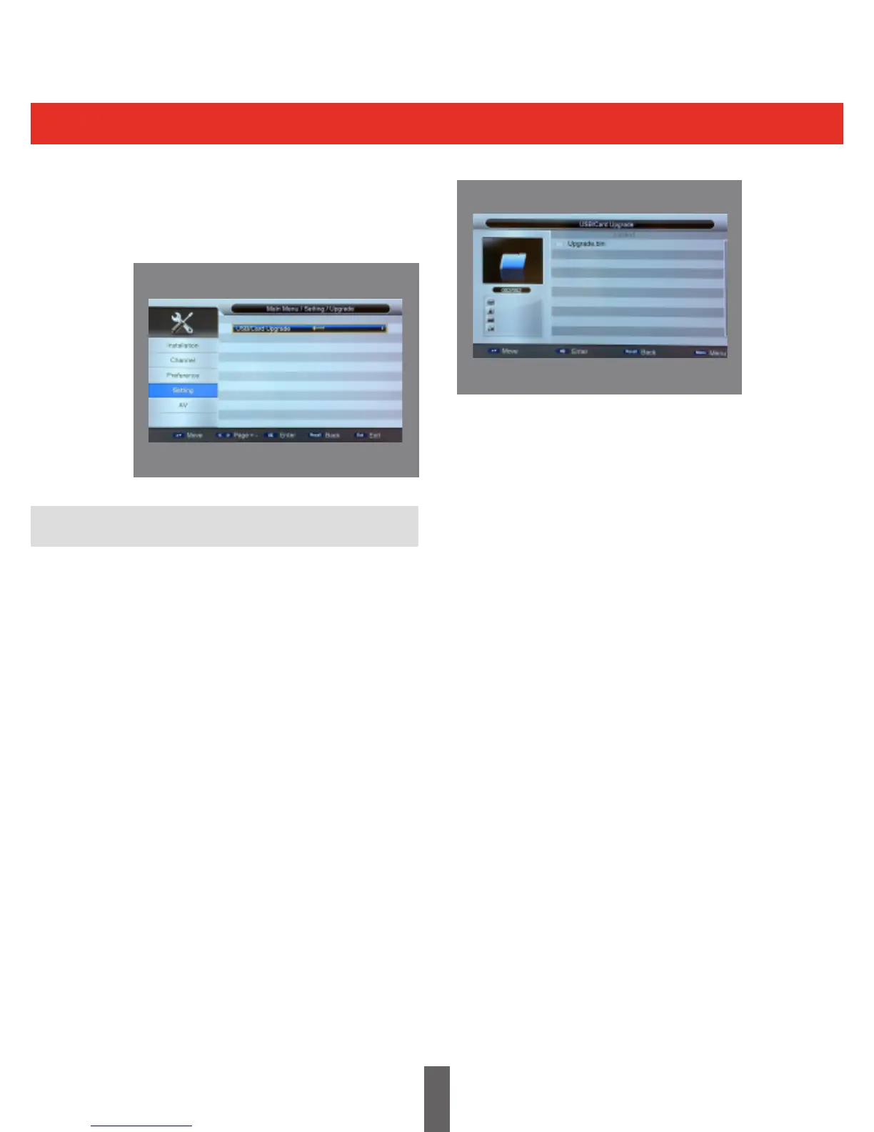 - Enter the USB upgrade menu