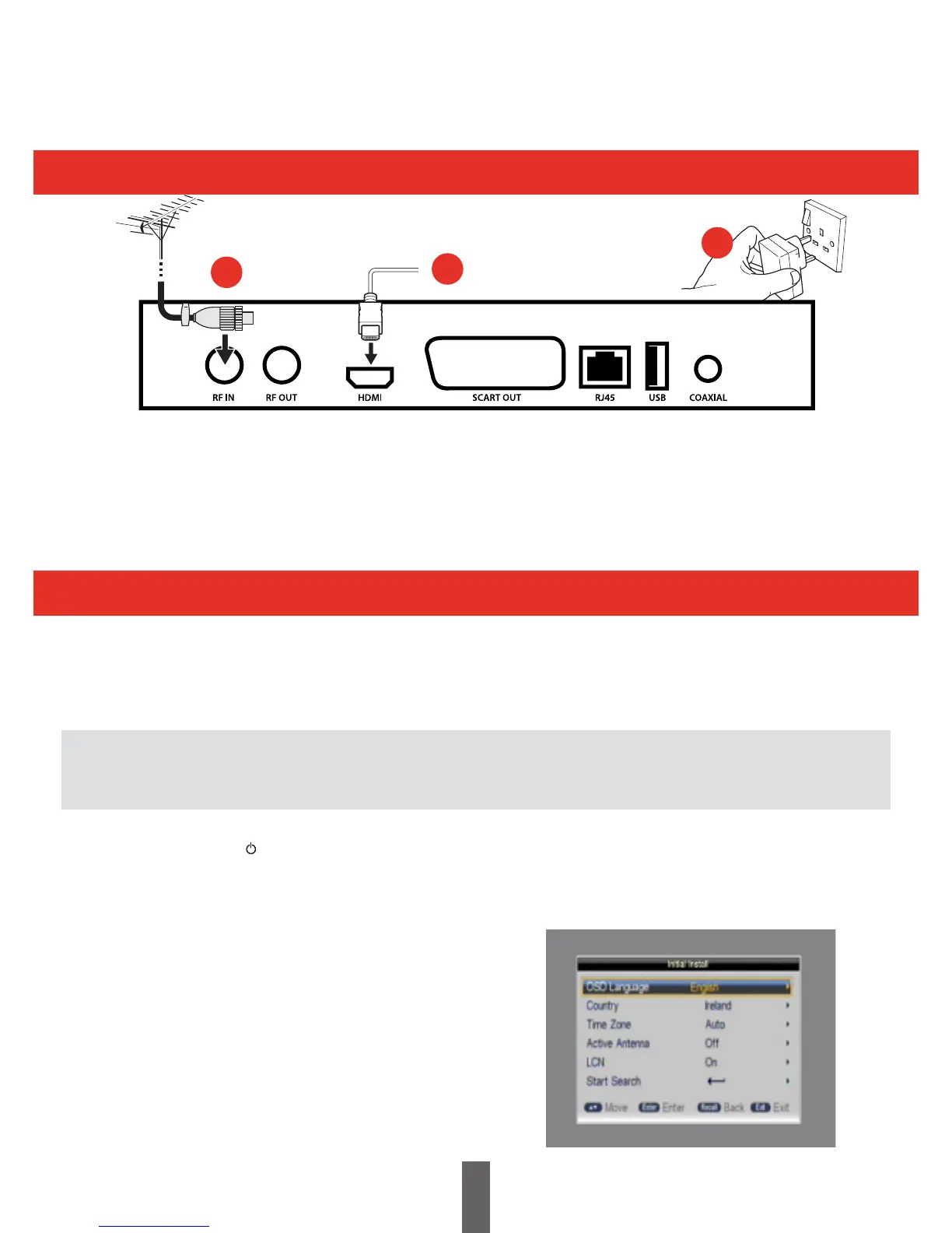WhentheReceiverispoweredonforthersttime,theFirst Time Installation screen appears.