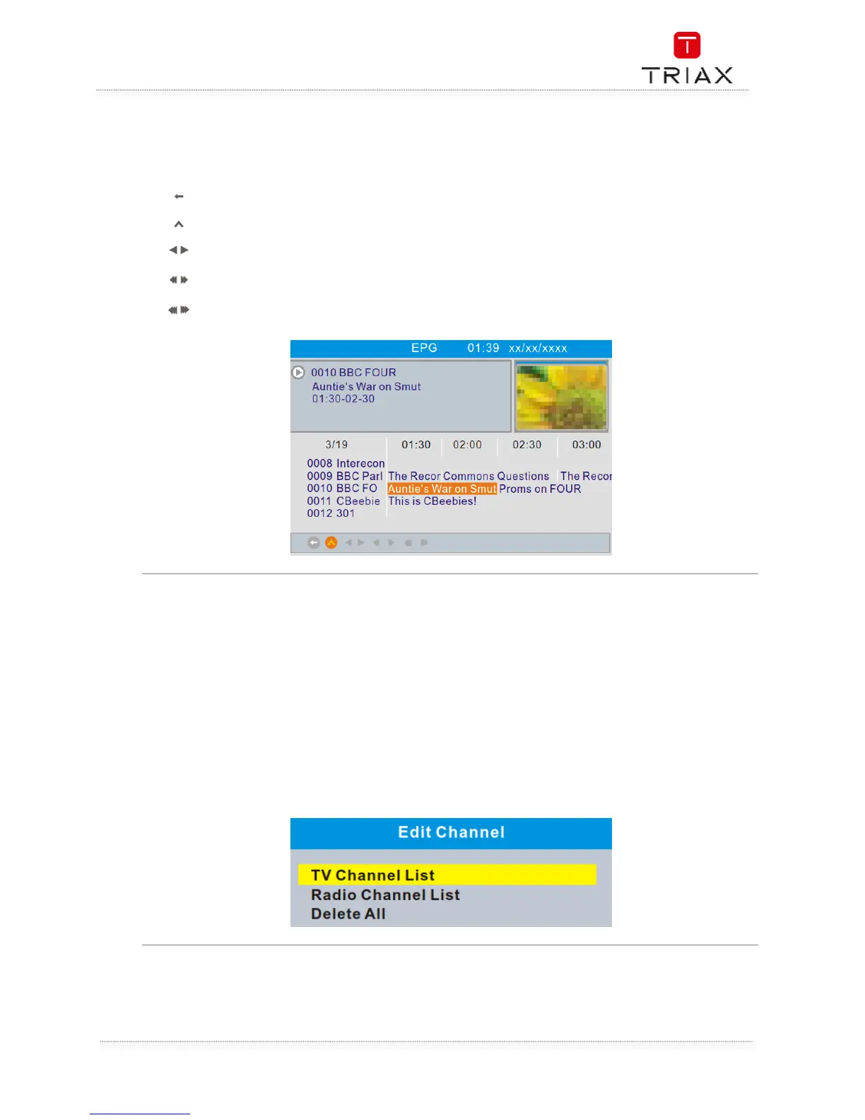 Triax TR 63 - EPG Navigation and Features; Channel Management; Edit Channel Menu
