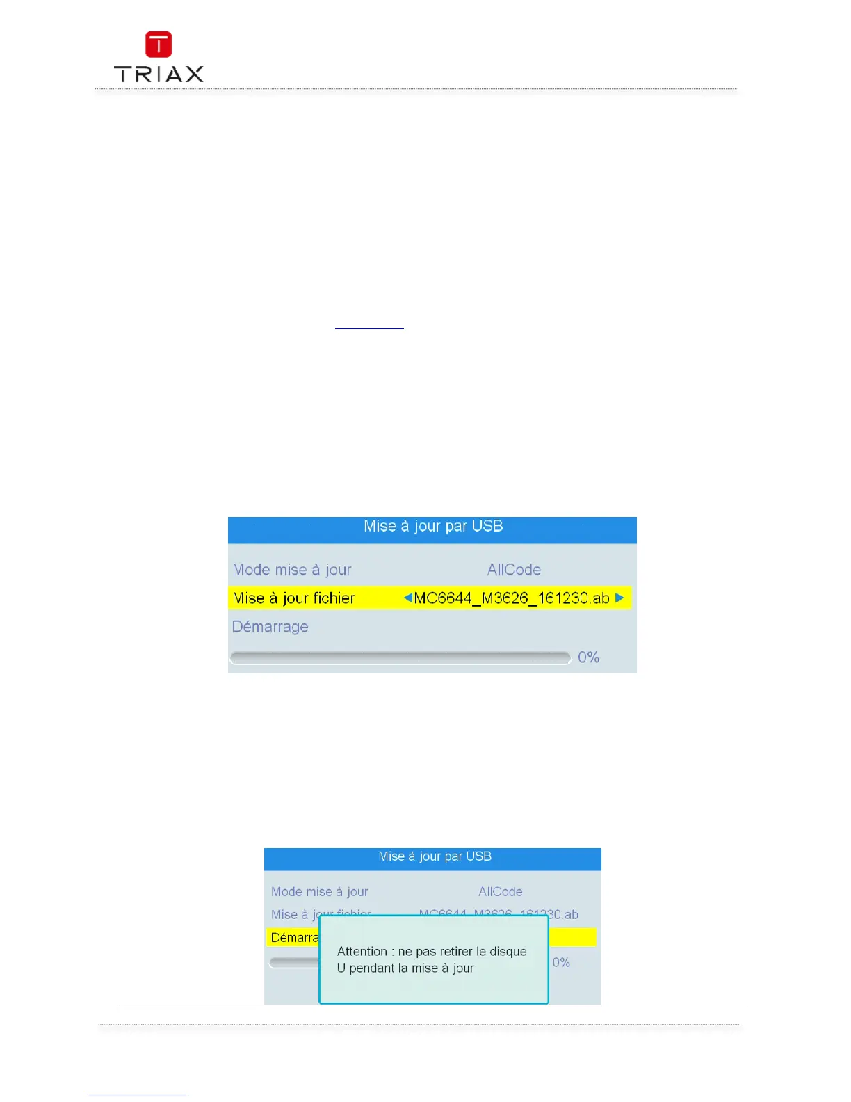 pourrez consulter notre site Internet www.triax.fr rubrique « téléchargements », « Logiciels & Mise à jour »,