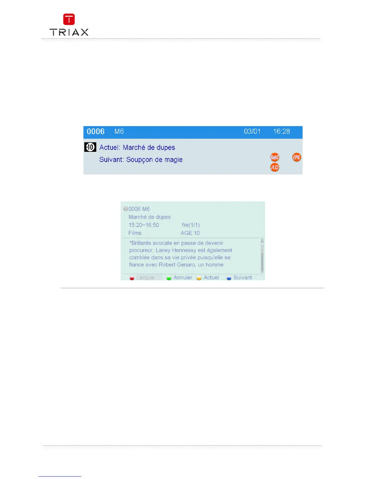 certain nombre d’informations sur le programme diffusé telles que la date et l’heure, le niveau moral de