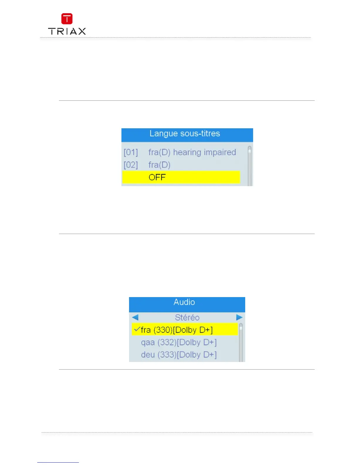 l’exemple ci-dessous). Quitter le menu audio en pressant sur <EXIT>.