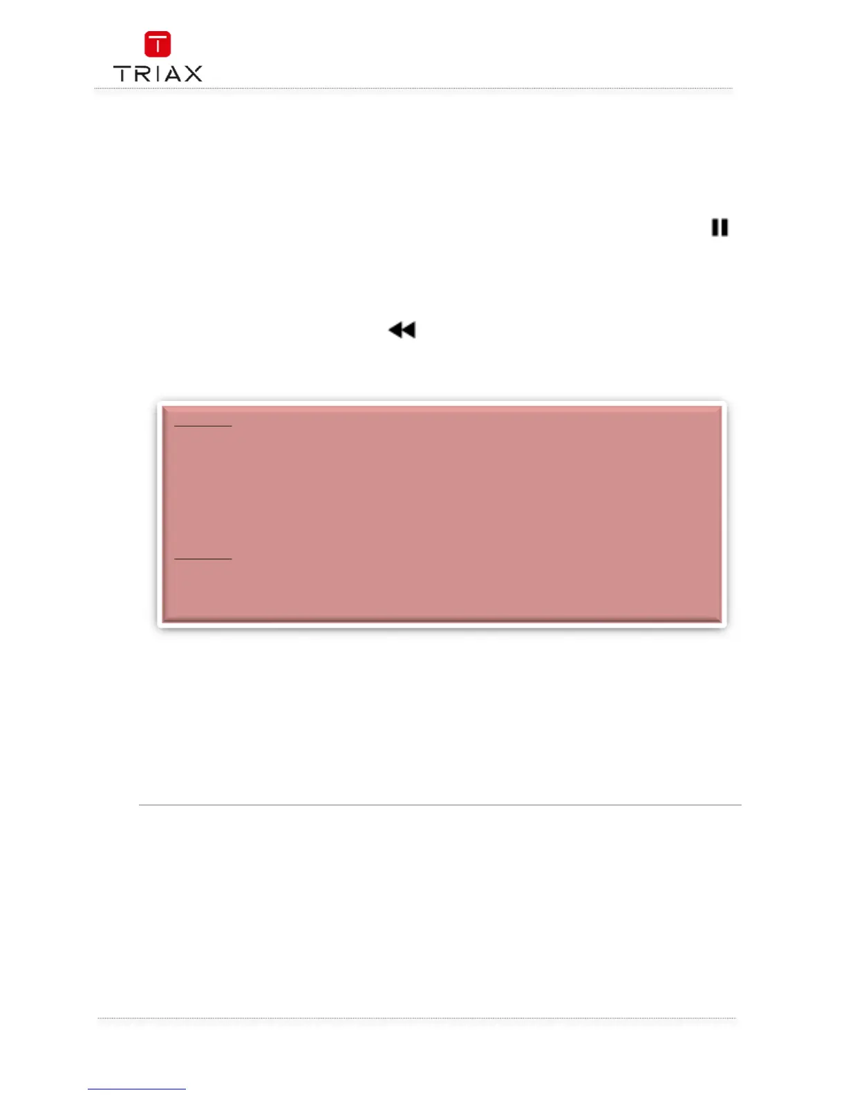 • Pause = « instant replay » désactivé, il est nécessaire de lancer manuellement le démarrage