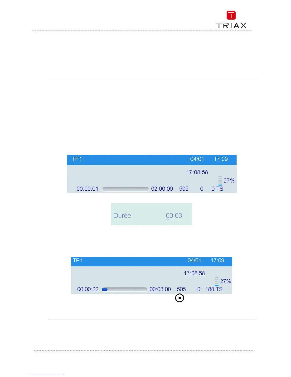appui sur la touche <STOP> vous indiquera l’état de l’enregistrement en cours et vous