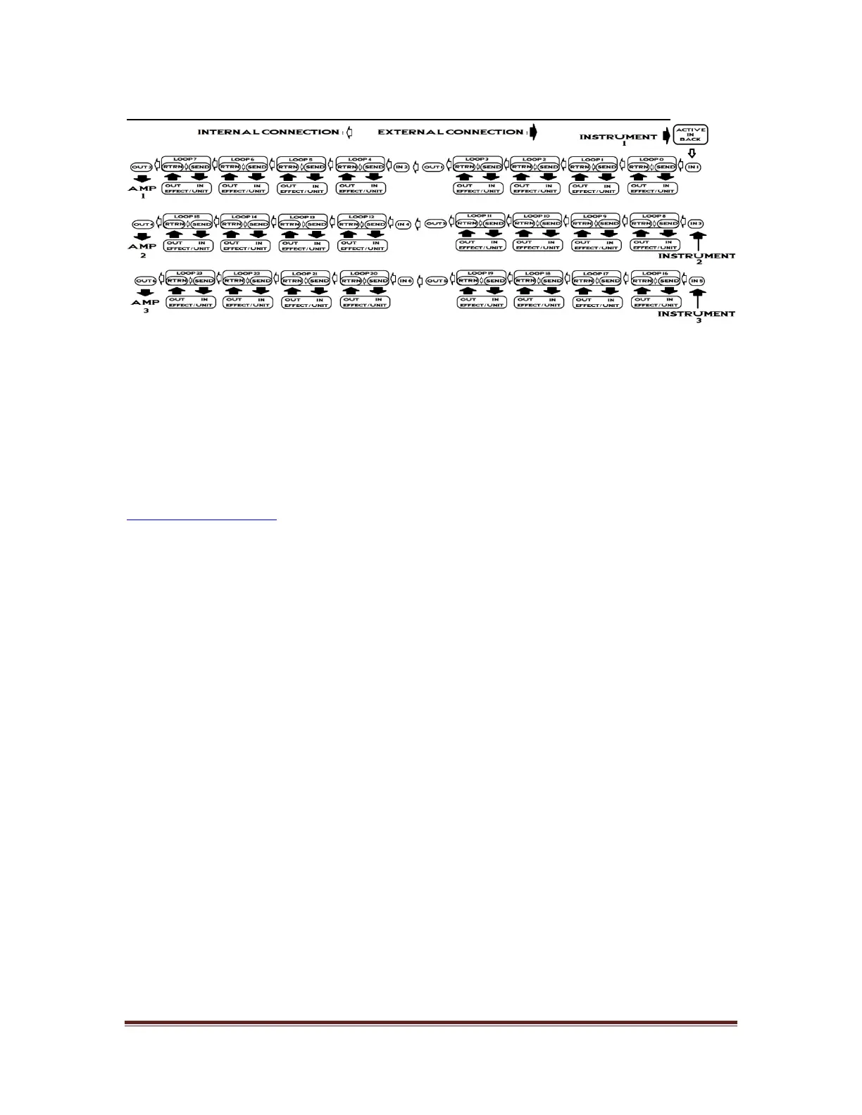 Multiple connections for 3 instruments (1 active – 2 passive) – 3 amplifiers :