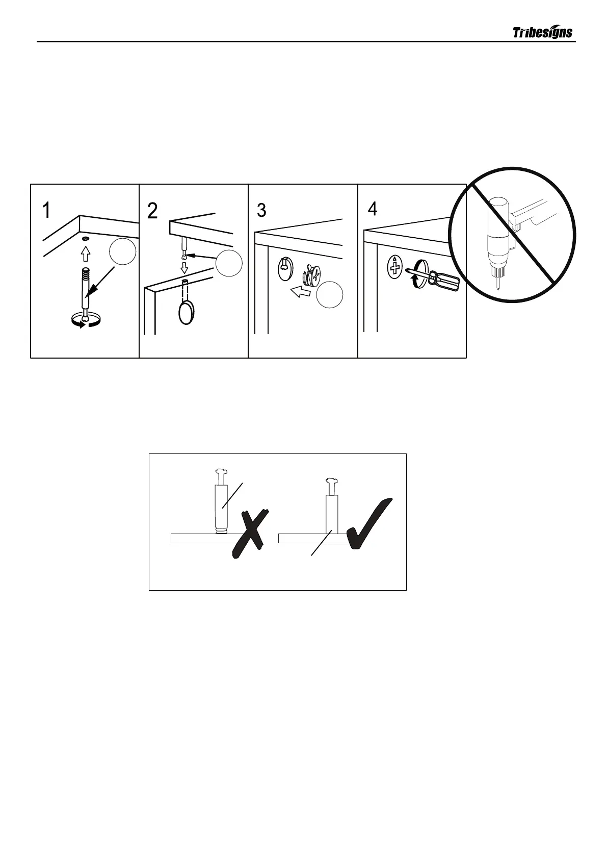 is tightened. Please do not use an electric screwdriver to assemble the unit.