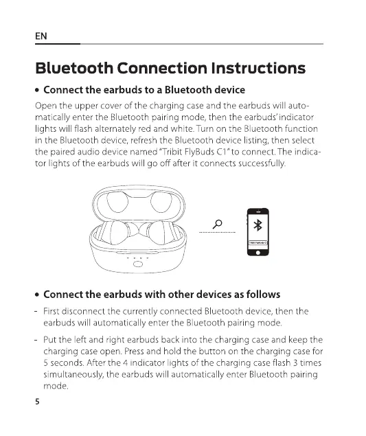 matically enter the Bluetooth pairing mode, then the earbuds' indicator