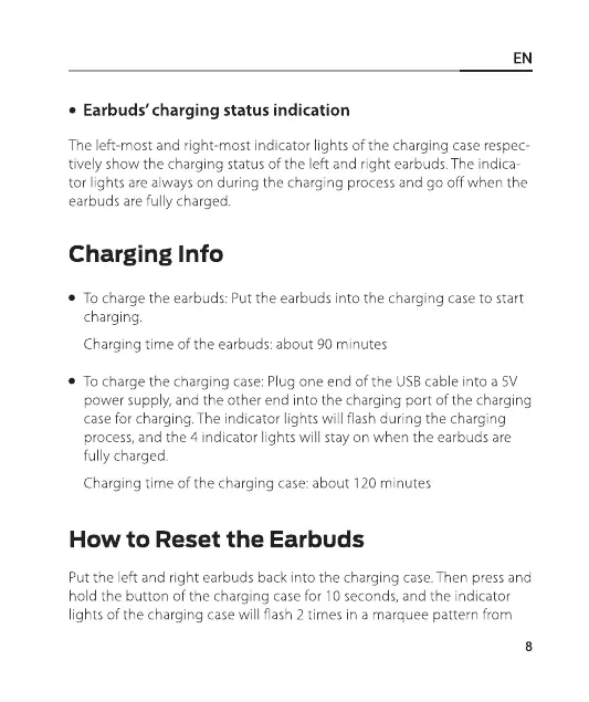 tively show the charging status of the left and right earbuds. The indica-