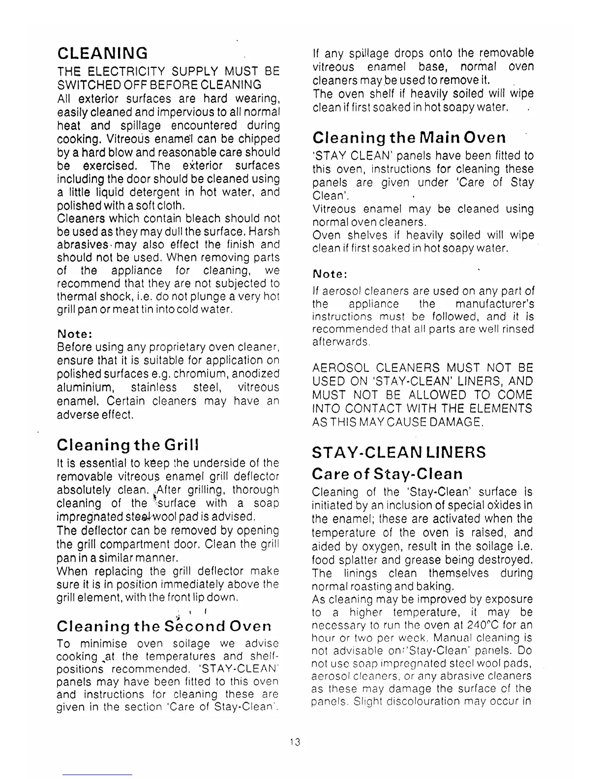 Tricity Bendix 2977 - Cleaning and Maintenance; General Cleaning Guidelines; Stay-Clean Liners Care