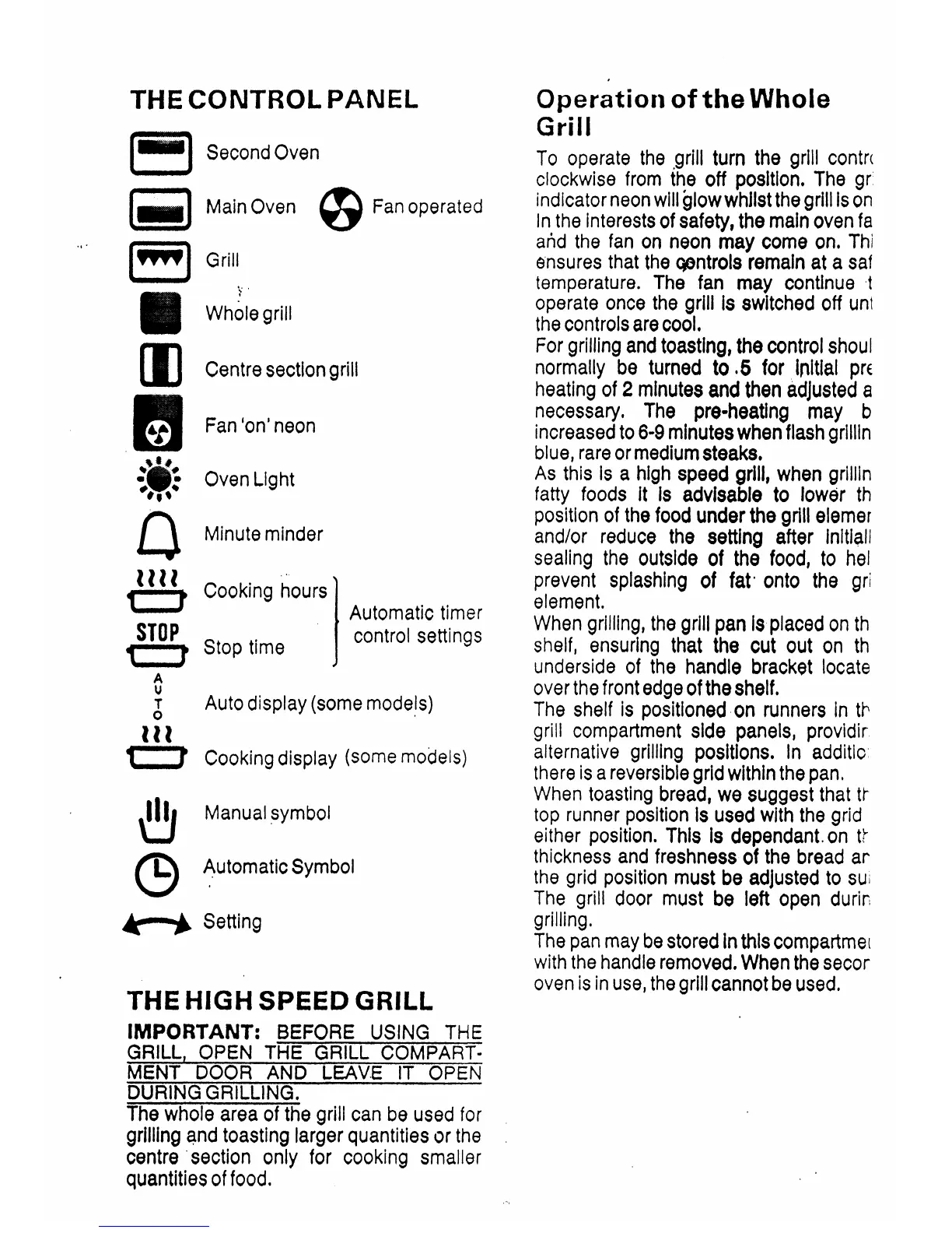 Tricity Bendix 2977 - Control Panel and Grill Operations; Control Panel Overview; Grill Operation