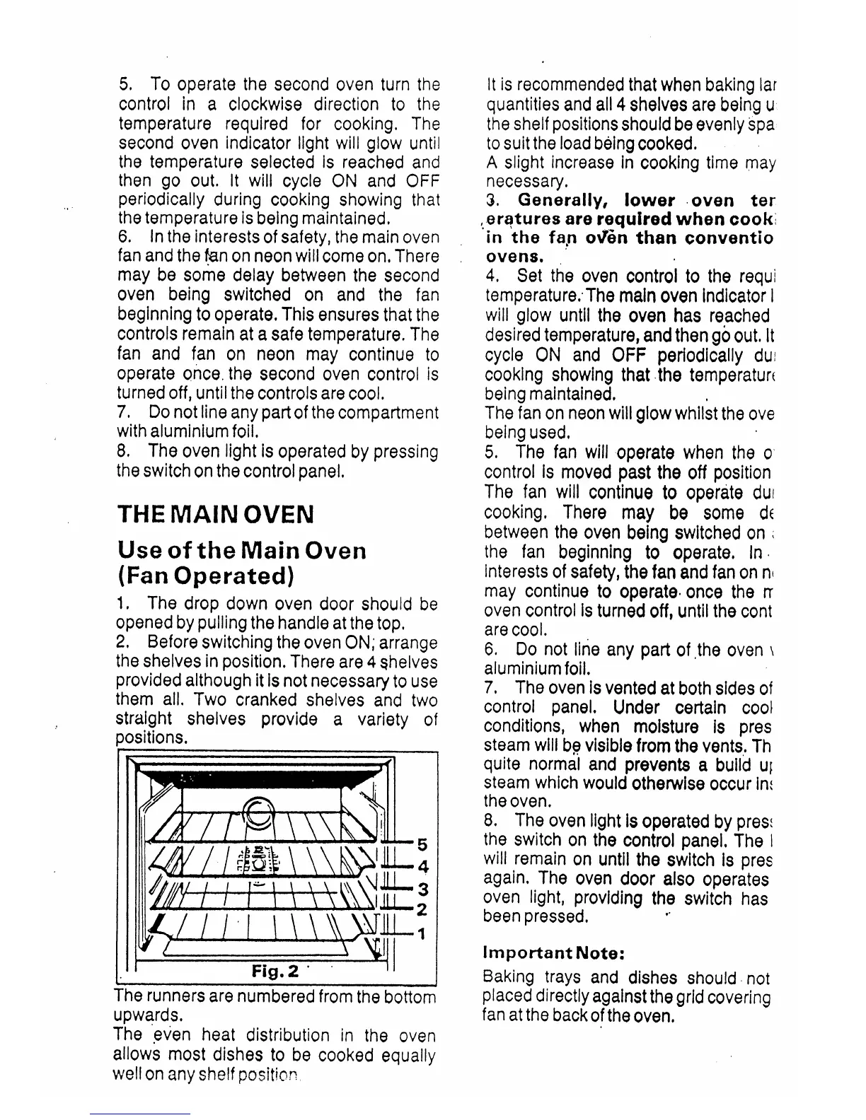 Tricity Bendix 2977 - Main Oven and Defrosting; Second Oven Usage Details; Main Oven (Fan Operated)