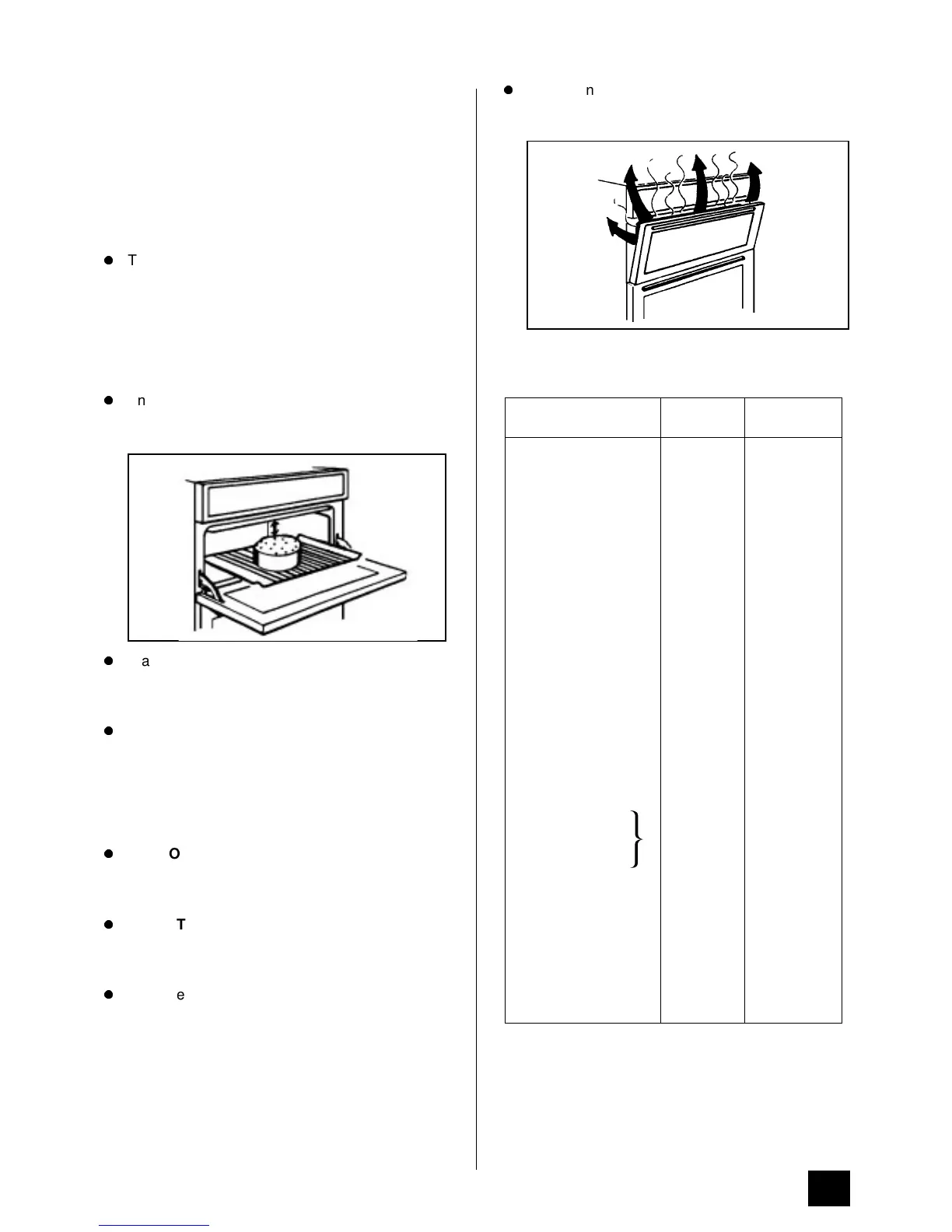 SECOND OVEN COOKING CHART
