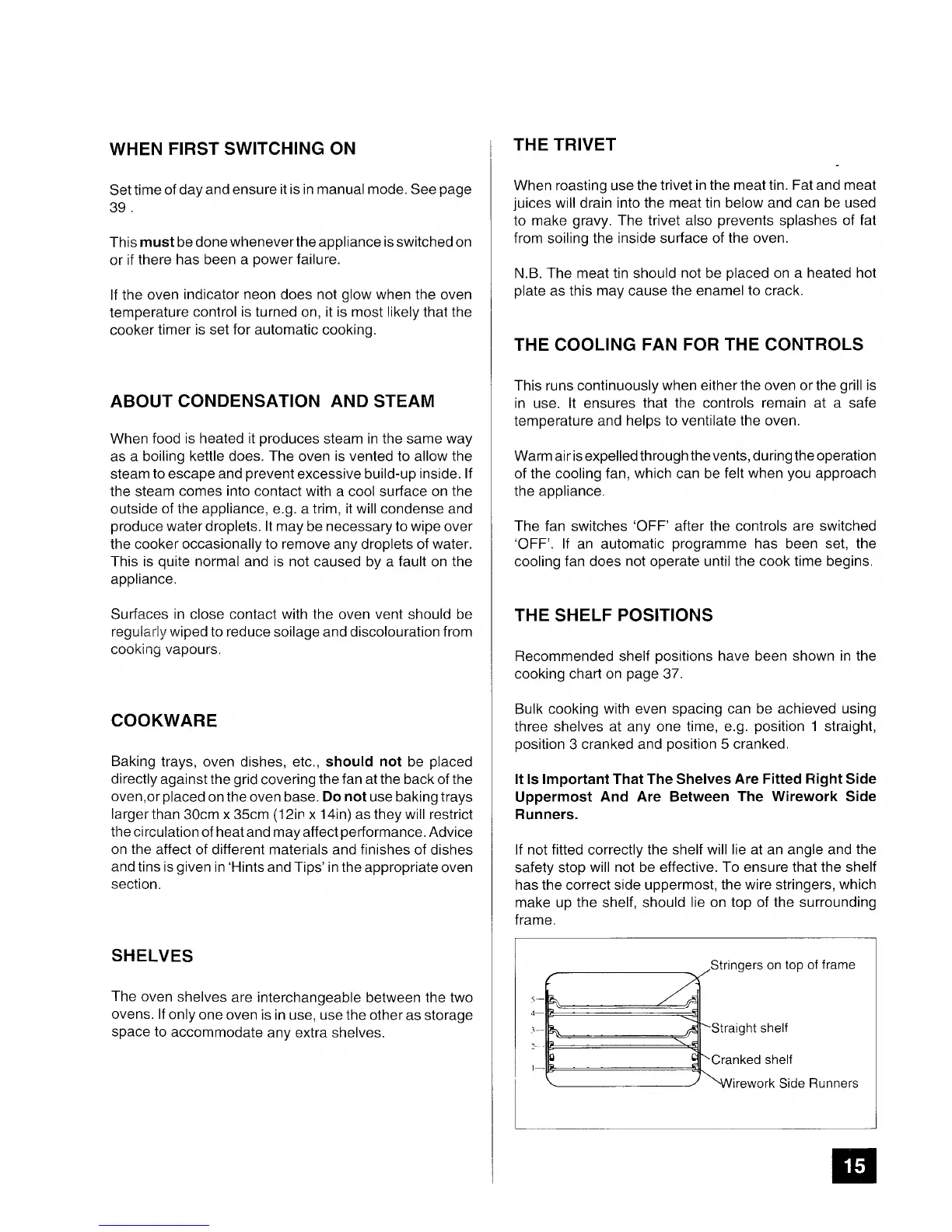 Tricity Bendix Brecon - When First Switching on; About Condensation and Steam; Cookware; Shelves