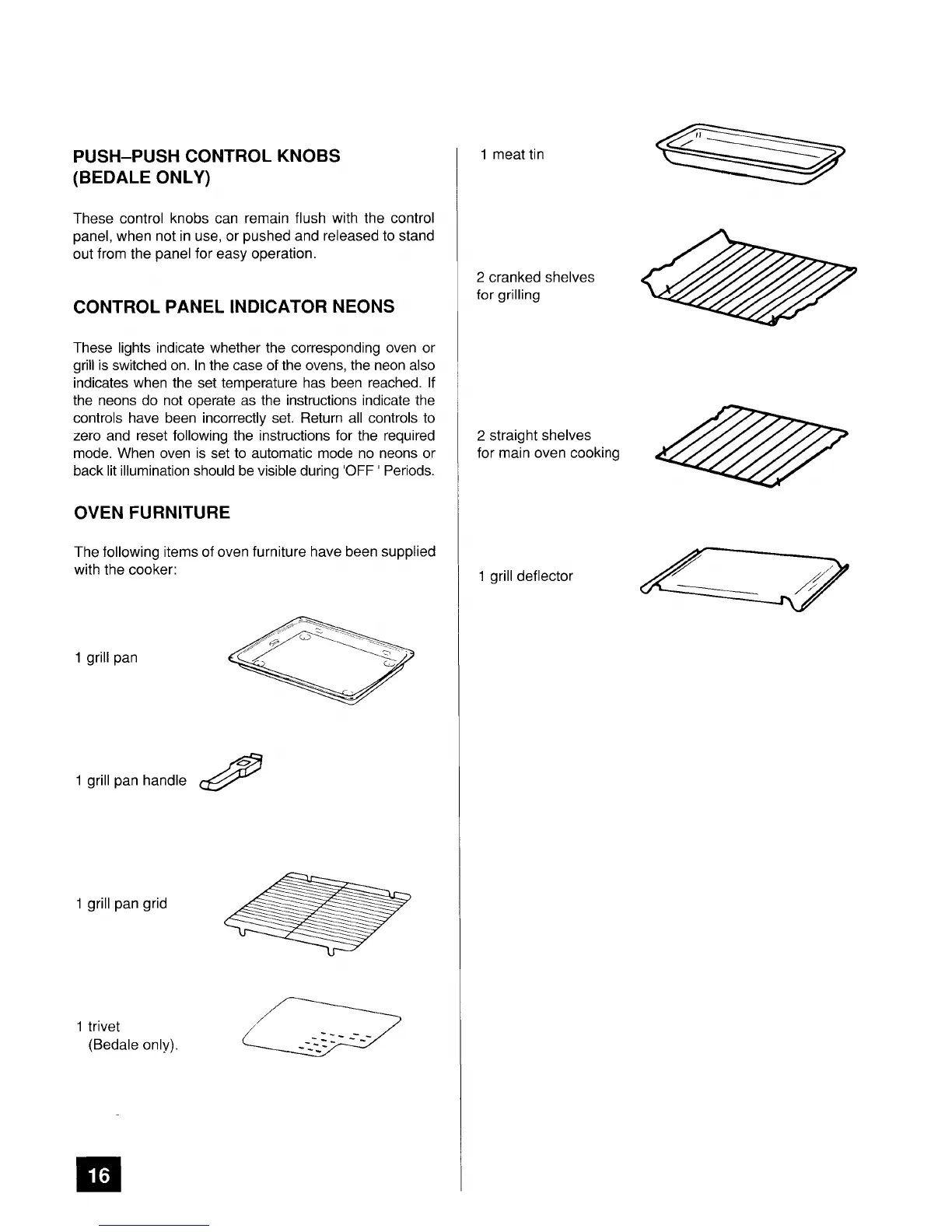 Tricity Bendix Brecon - Push Control Knobs; Control Panel Indicator Neons; Oven Furniture