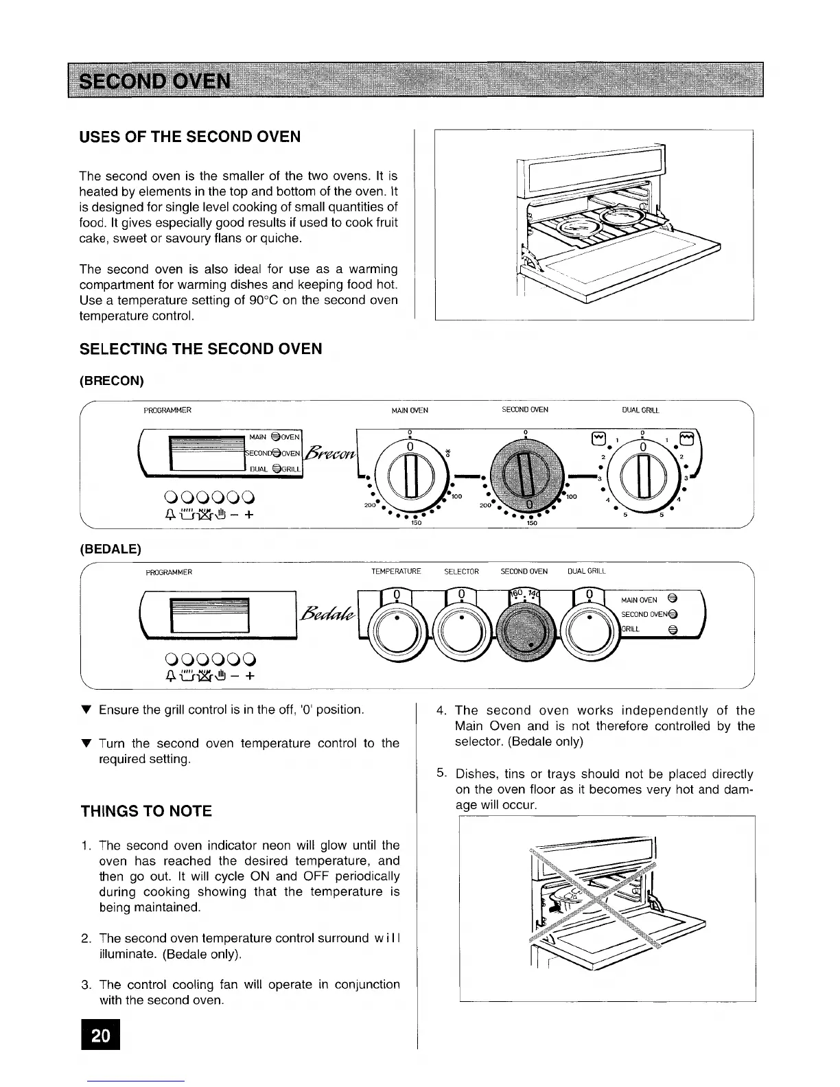 Tricity Bendix Brecon - Second Oven; Uses of the Second Oven; Selecting the Second Oven