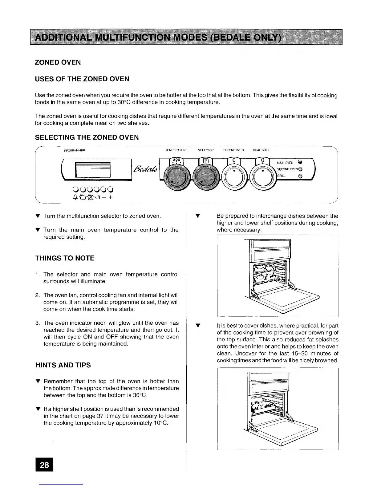 Tricity Bendix Brecon - Zoned Oven; Uses of the Zoned Oven; Selecting the Zoned Oven