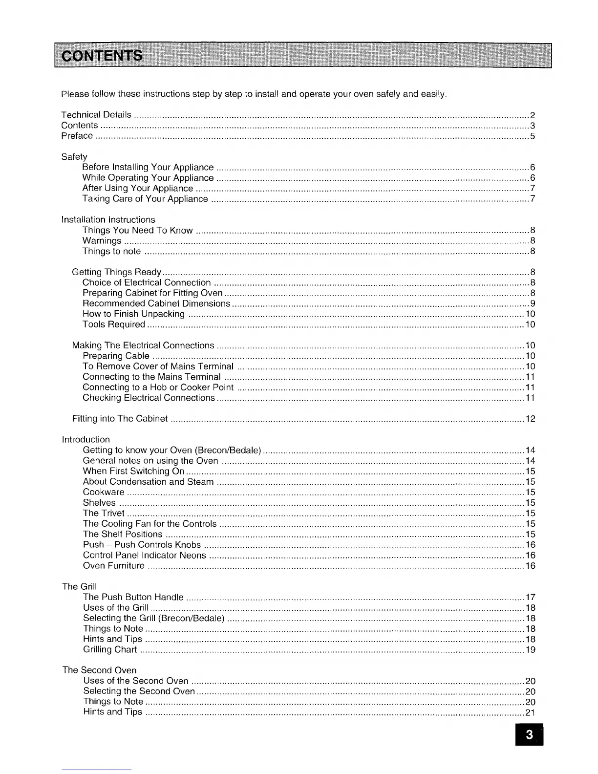 Tricity Bendix Brecon - Contents