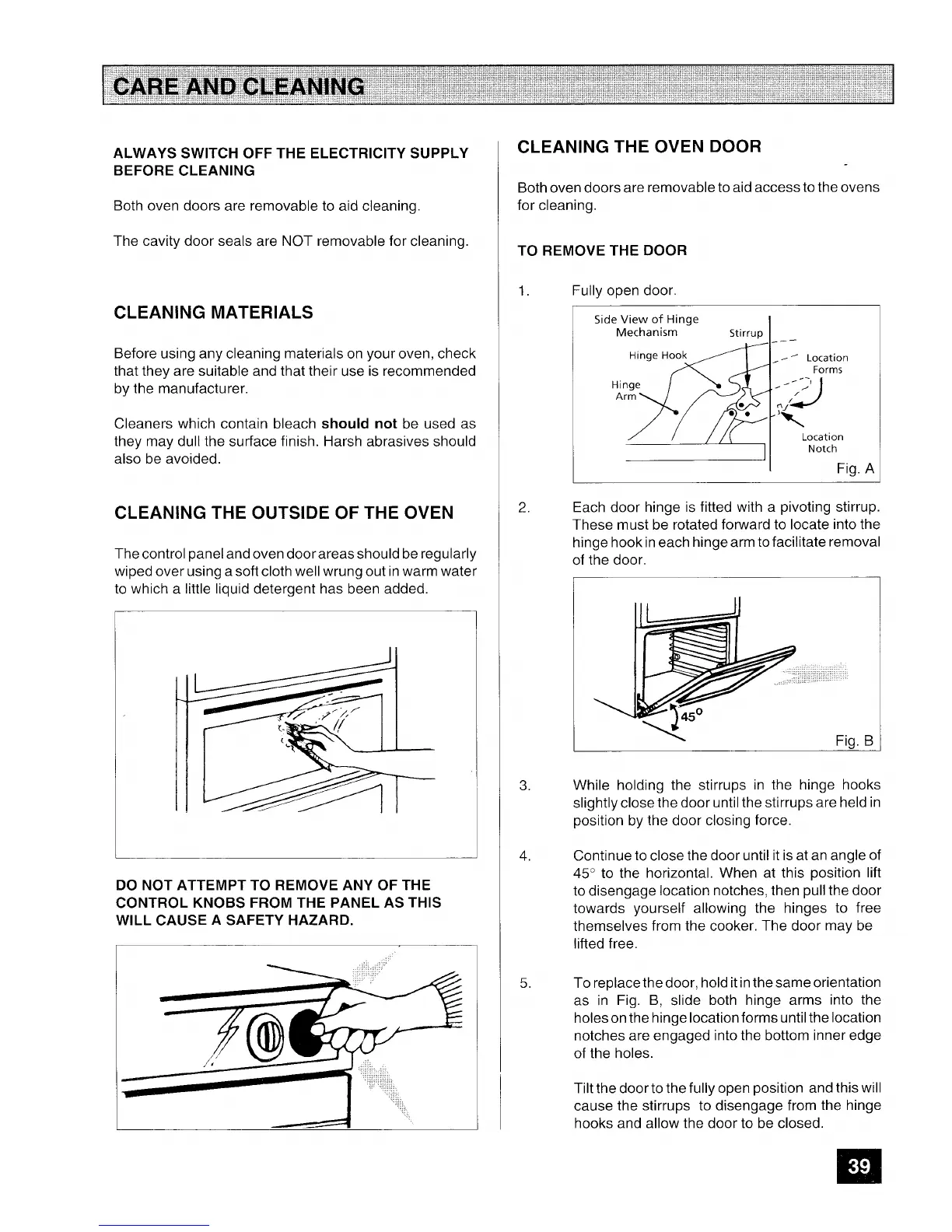 Tricity Bendix Brecon - Care and Cleaning; Cleaning Materials; Cleaning the Outside of the Oven; Cleaning the Oven Door