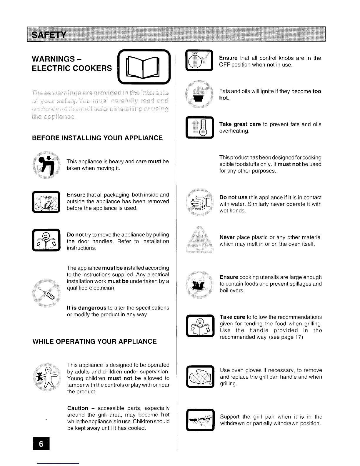 Tricity Bendix Brecon - Safety; Before Installing Your Appliance; While Operating Your Appliance