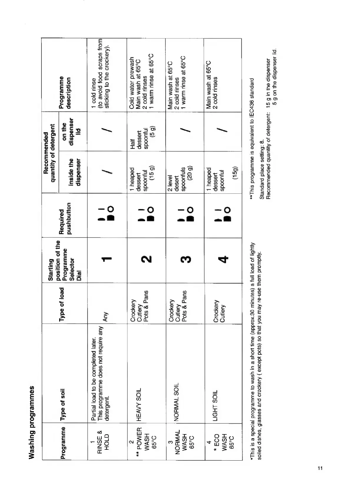 Tricity Bendix CDW 086 - Washing Programmes