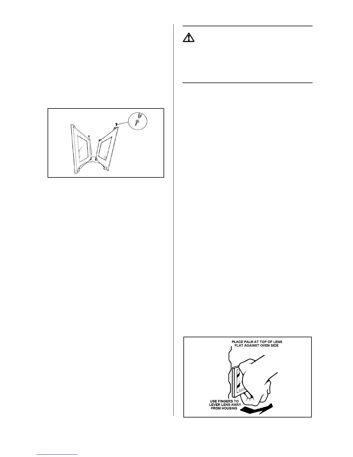 Tricity Bendix CSE452 - Cleaning between the Outer and Inner Door Glass; To Clean the Inner Glass Door Panels; Replacing the Oven Light Bulb