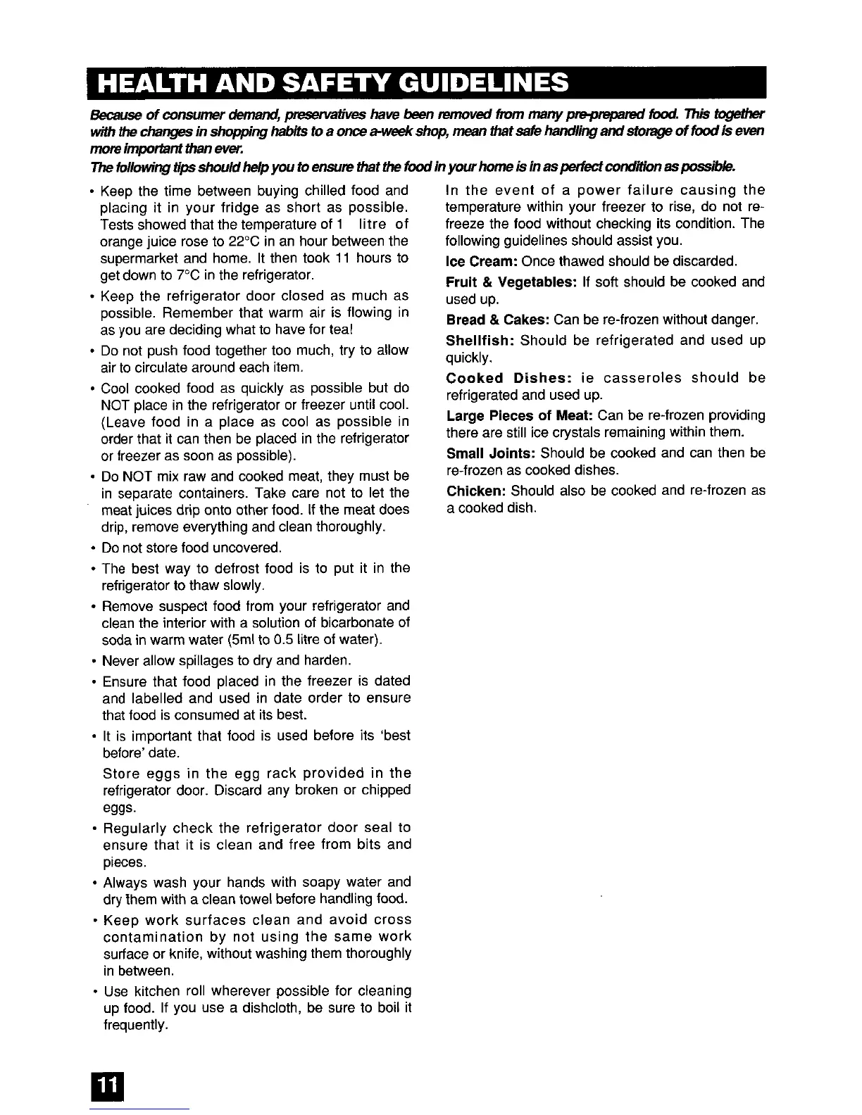 Tricity Bendix Fridge/Freezer - HEALTH AND SAFETY GUIDELINES