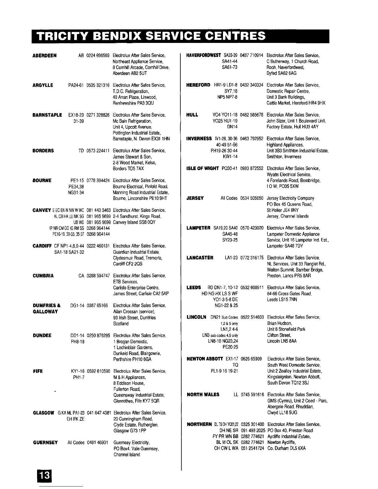 Tricity Bendix Fridge/Freezer - TRICITY BENDIX SERVICE CENTRES