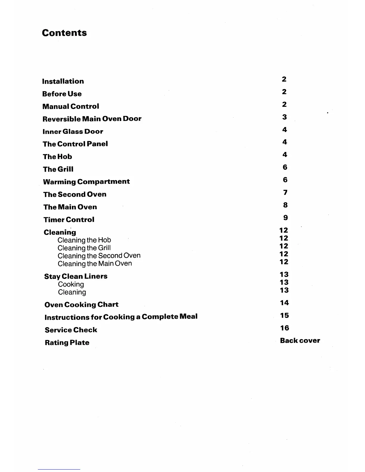 Tricity Bendix President - Contents