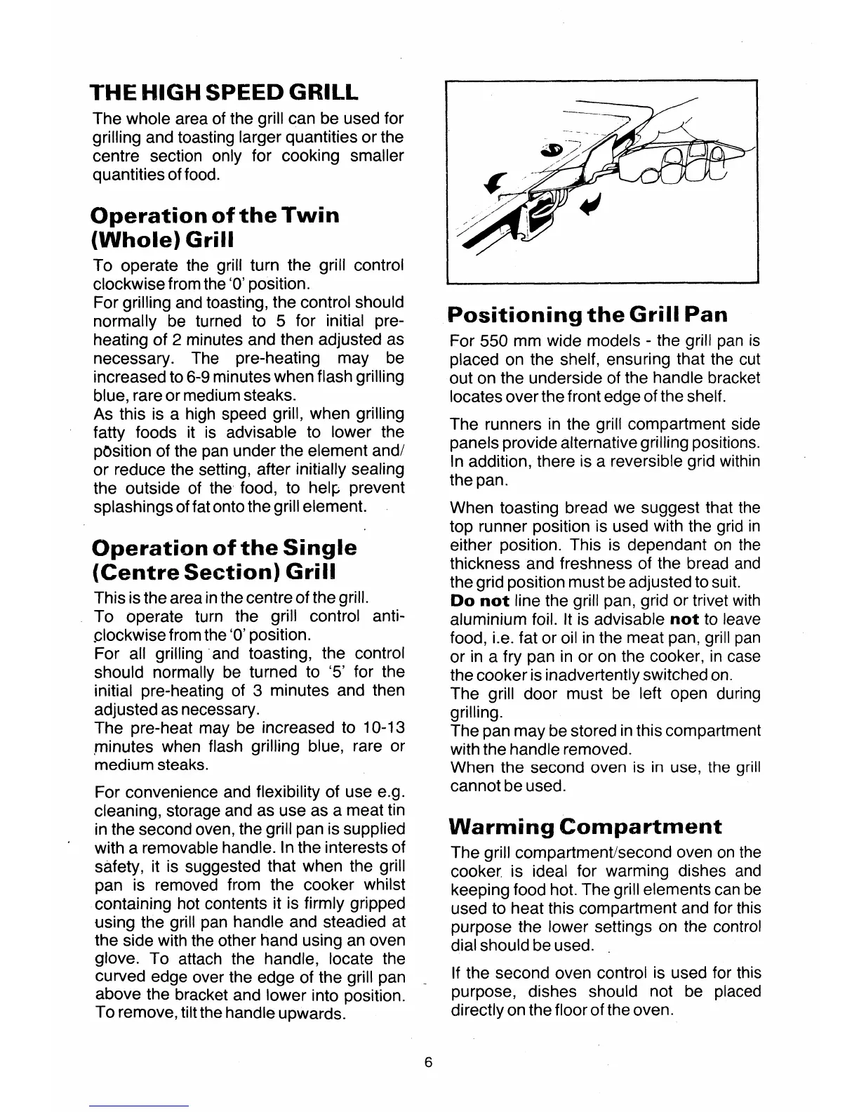 Tricity Bendix President - The High Speed Grill; Operation of the Twin Grill; Operation of the Single Grill; Grill Pan Positioning