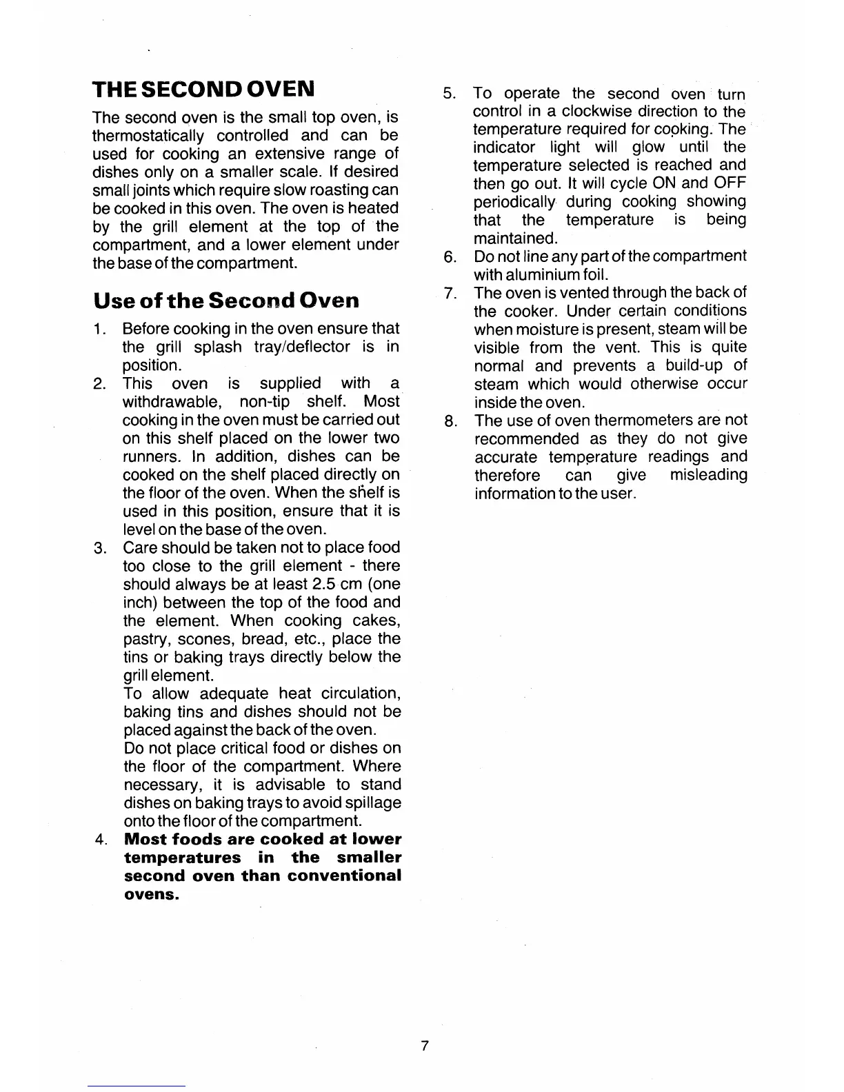 Tricity Bendix President - The Second Oven; Use of the Second Oven