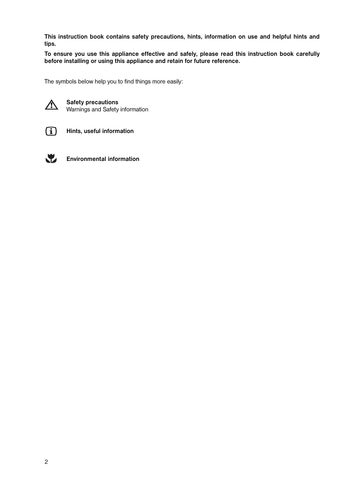 This instruction book contains safety precautions, hints, information on use and helpful hints and