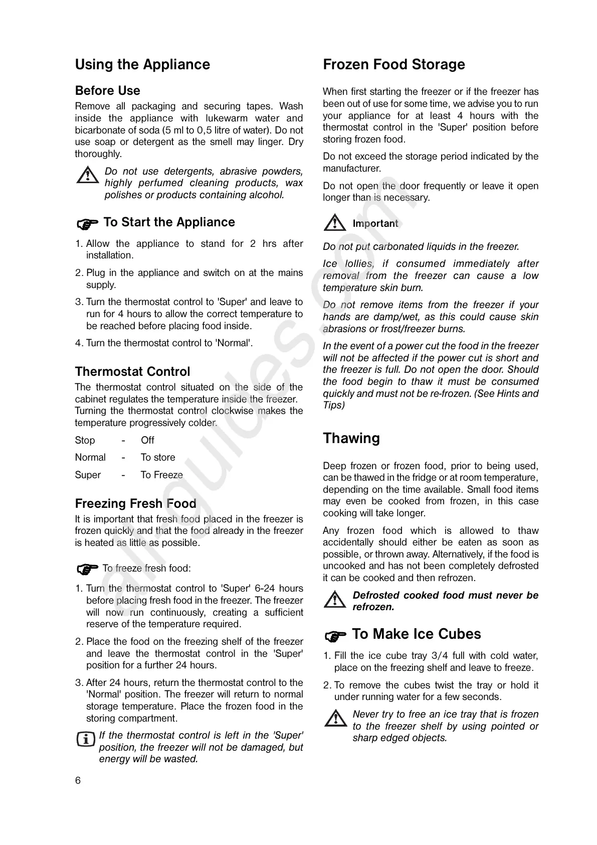 quickly and must not be re-frozen. (See Hints and