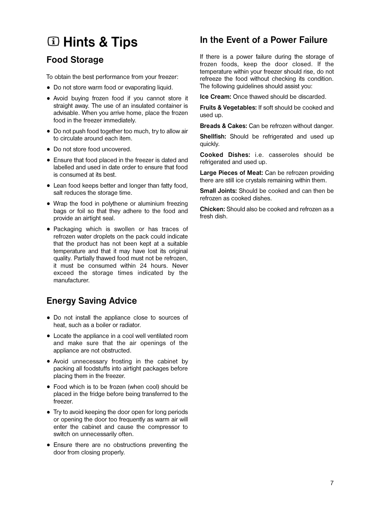 To obtain the best performance from your freezer: