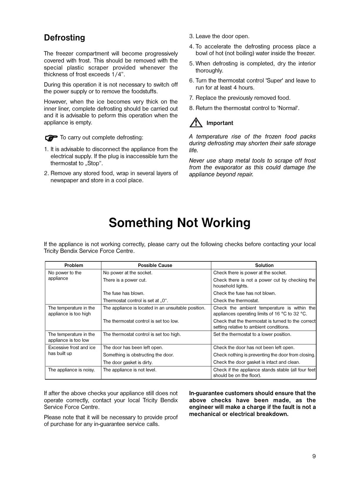 operate correctly, contact your local Tricity Bendix