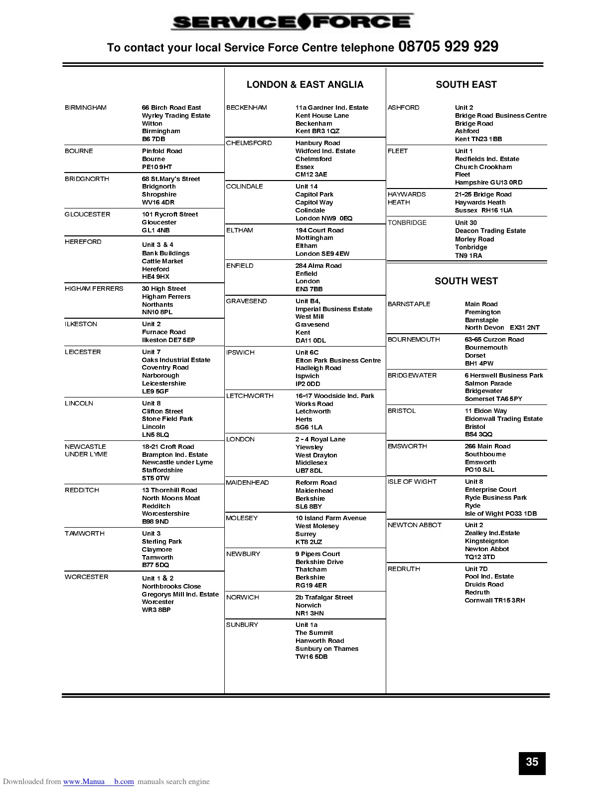 To contact your local Service Force Centre telephone 08705 929 929