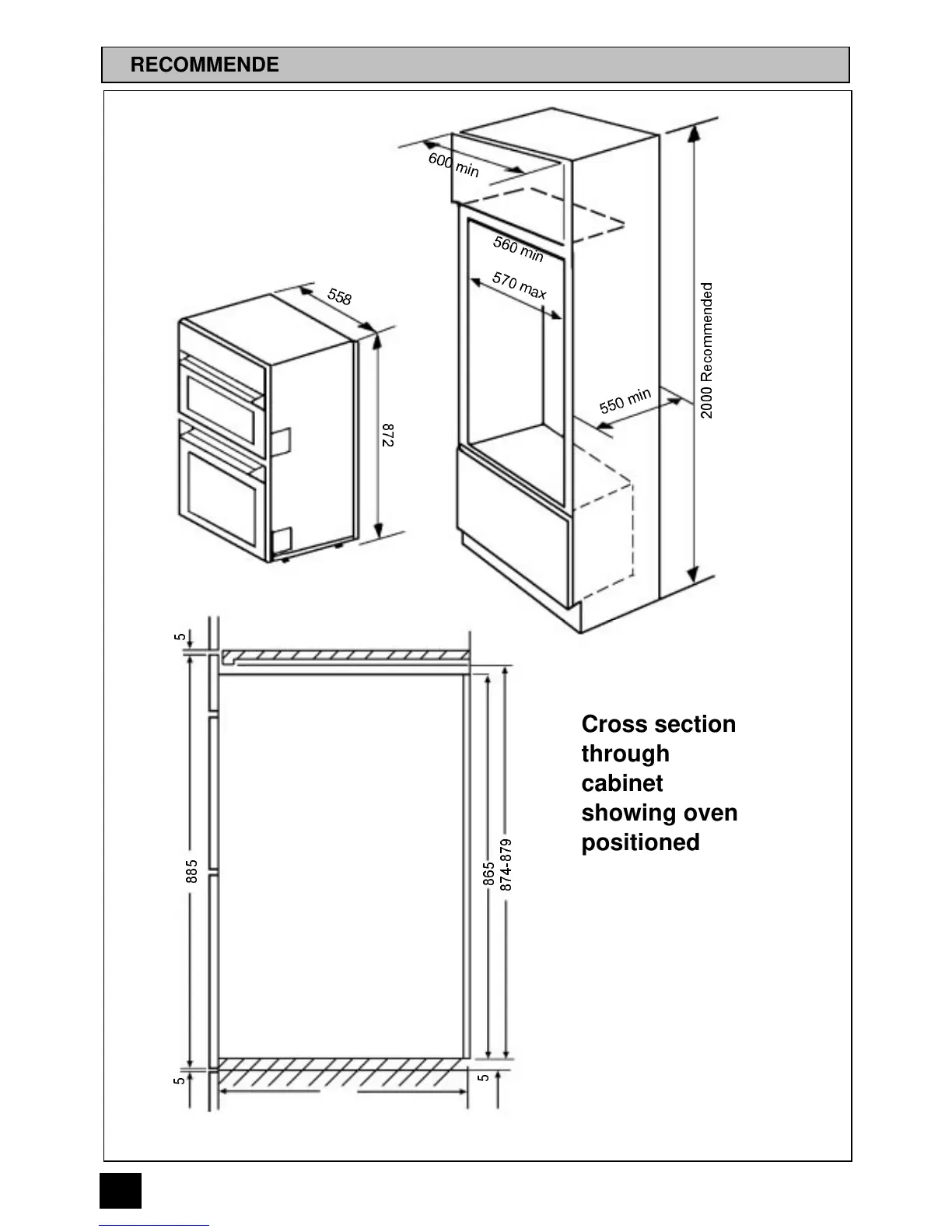 RECOMMENDED CABINET DIMENSIONS (IN MILLIMETRES)