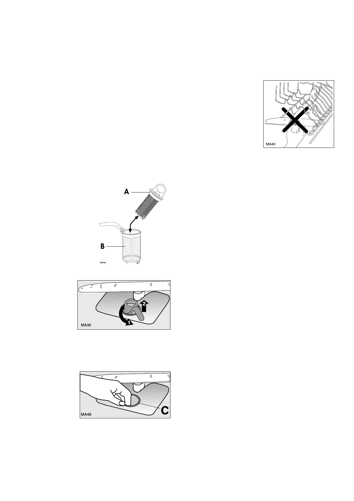6. Remove the flat filter (C) from the base of the washing