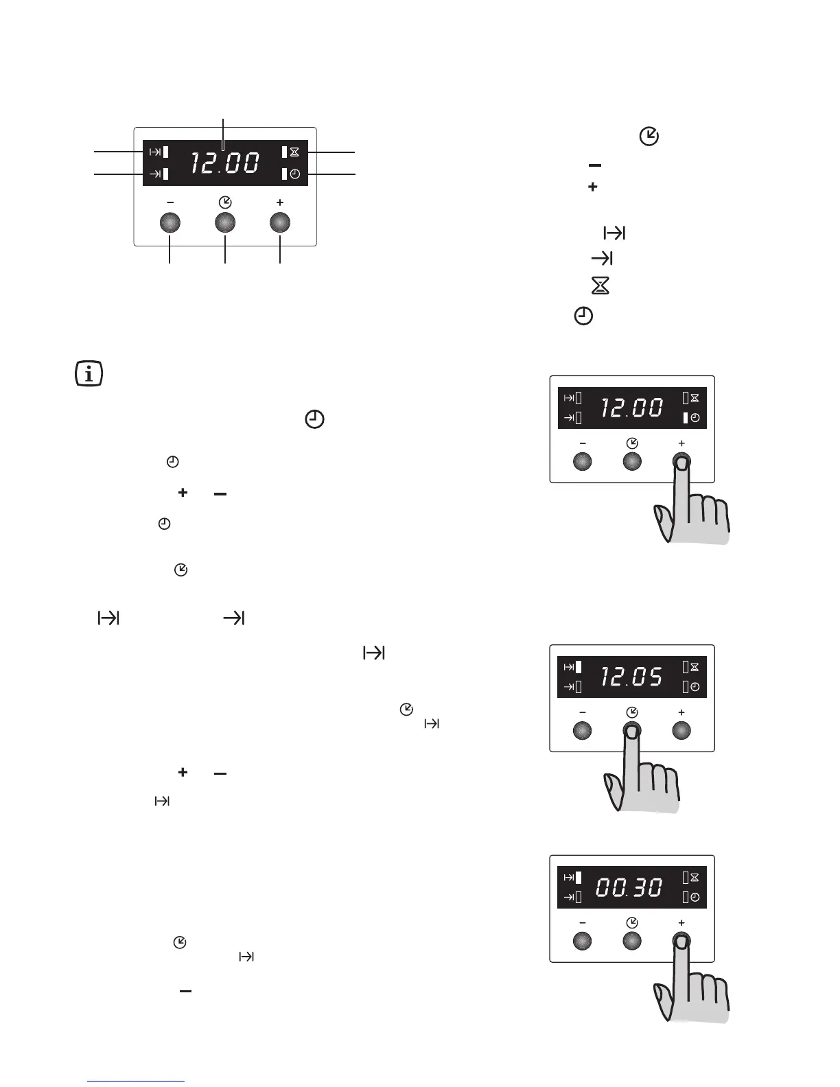 2. Press button “ ” until the display shows “0:00”. After 5 seconds the