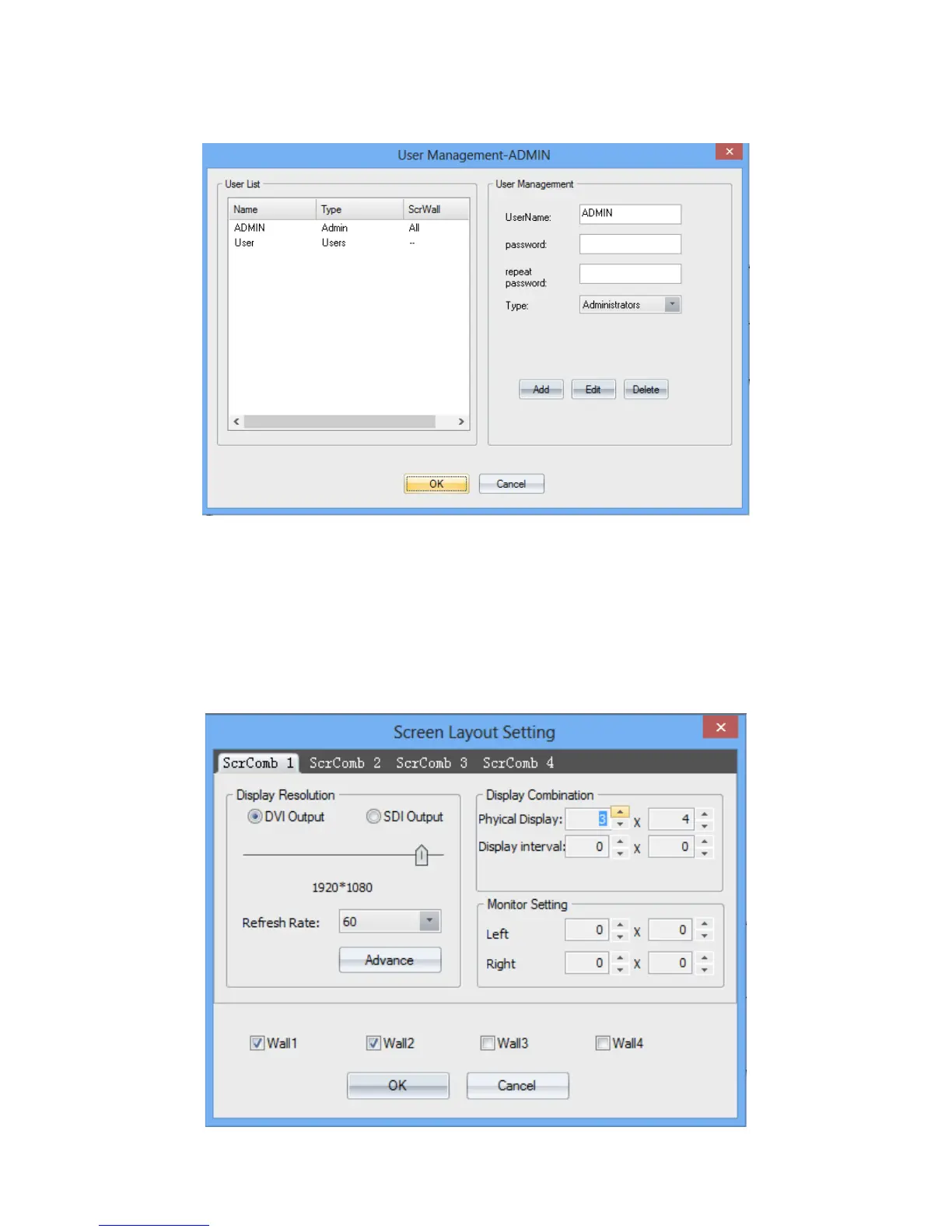 Clicking ‘Layout’ on the ‘Software Operation’ to set the video-wall. users can set the output