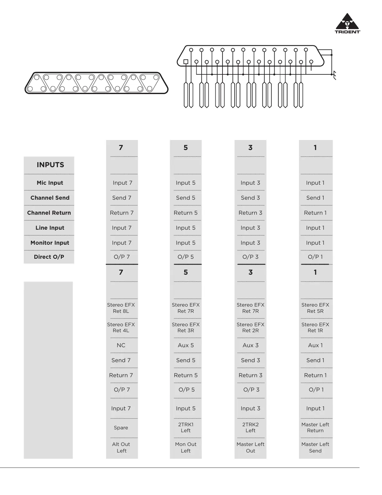 Trident 78 Rear Connections | Power Supply Trident 78 DSub-25 Pin Out