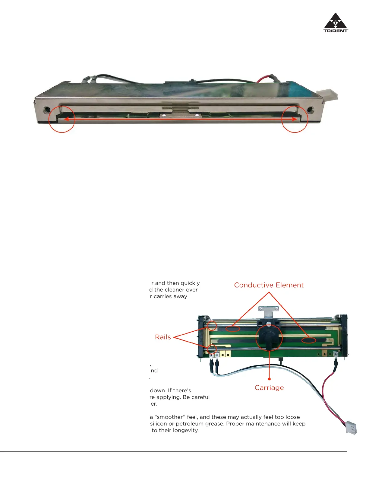 Some faders have lubricating grease applied by the manufacturer, while others employ a self-lubricating Teflon-type of