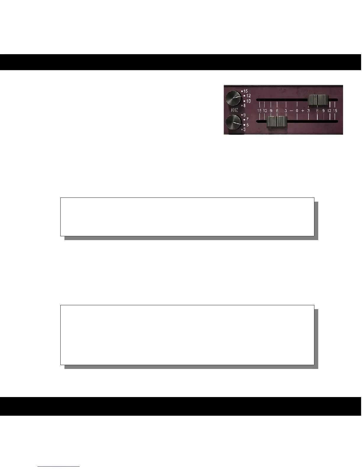 “frequency selector” knob and a gain fader. The fader will