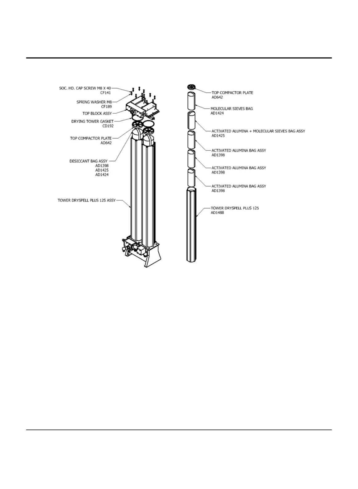 l Remove the drying tower gasket and replace with new ones