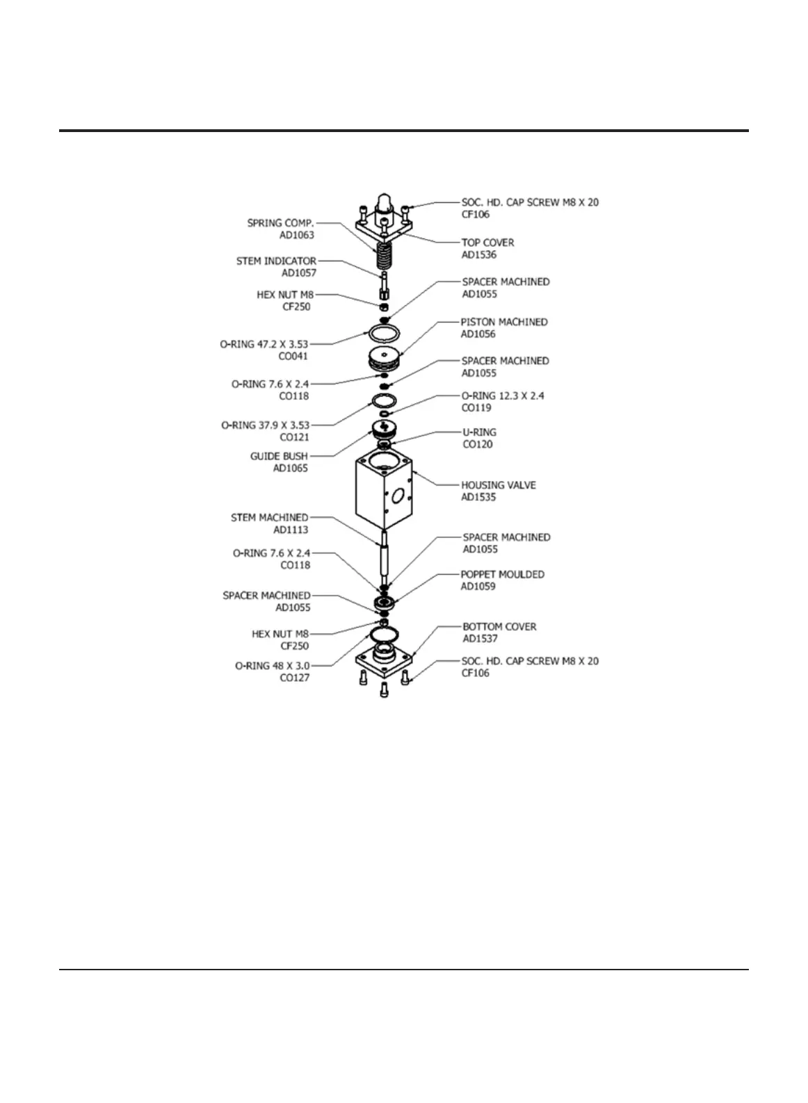 l Remove the M8 hex nut and take out the spacer machined. Clean the spacer machined