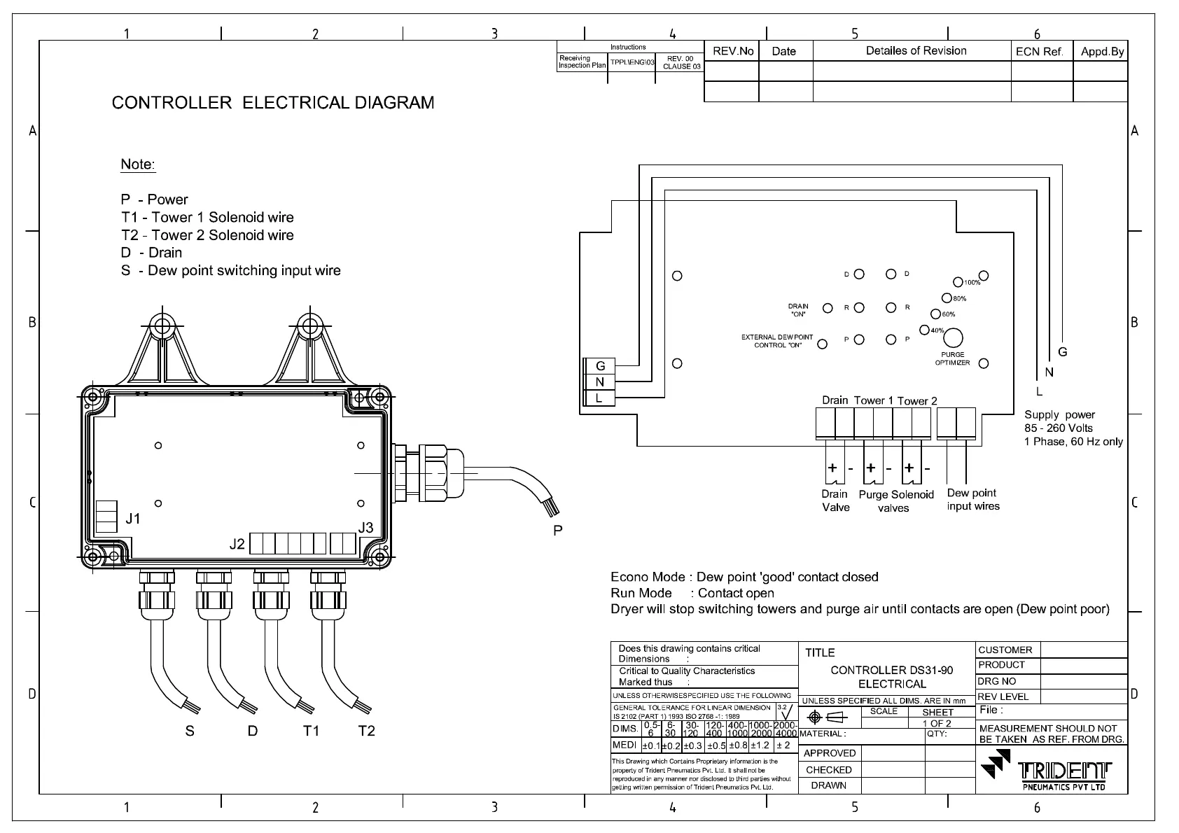 Trident Dryspell Series - Controller Electrical Diagram (DS31-90); Econo Mode: Dew point good contact closed; Run Mode: Contact open